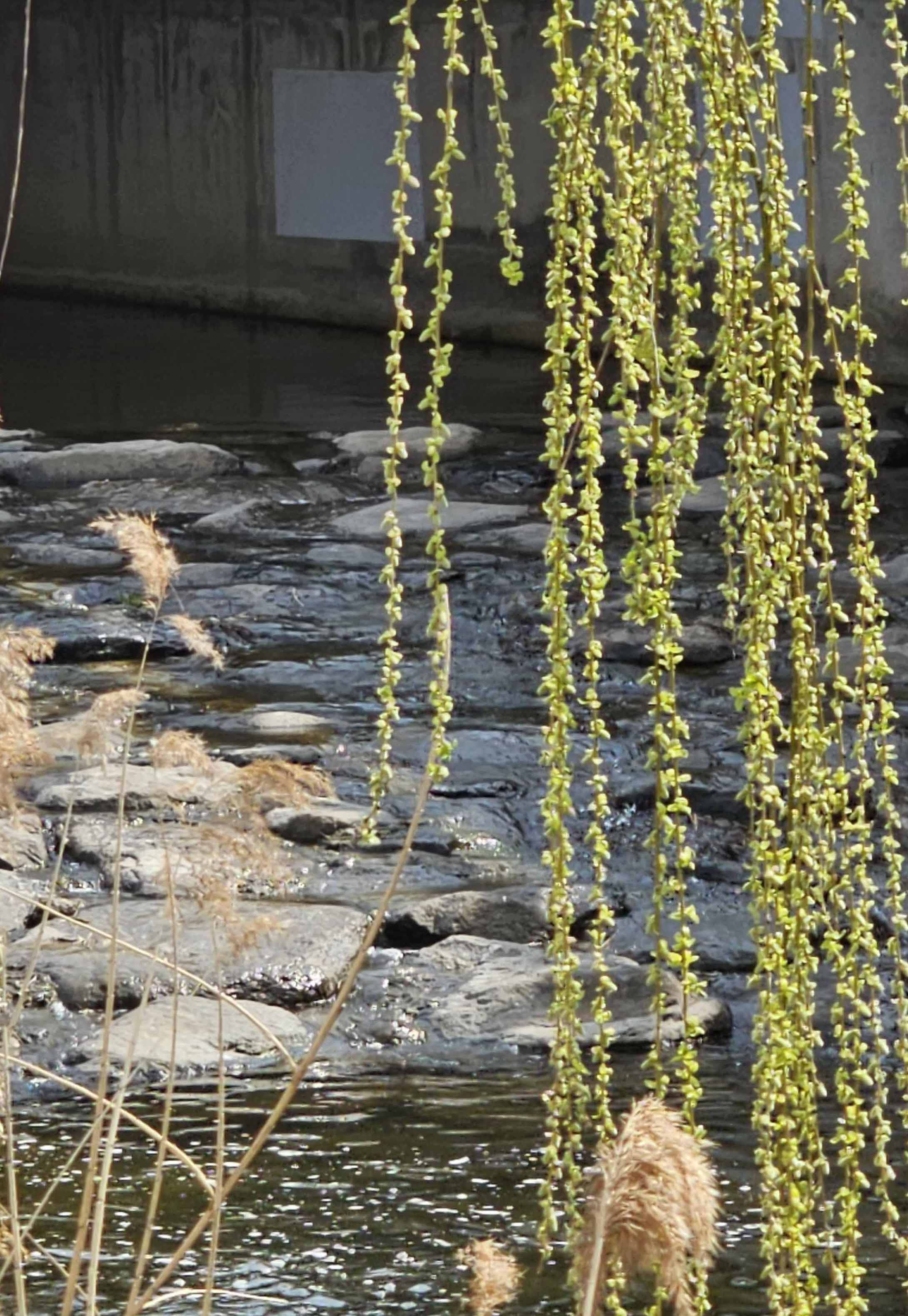 봉림교 근처. 버드나무 새순 사이로 도림천이 흐른다. 갈대도 아직 남아있고.